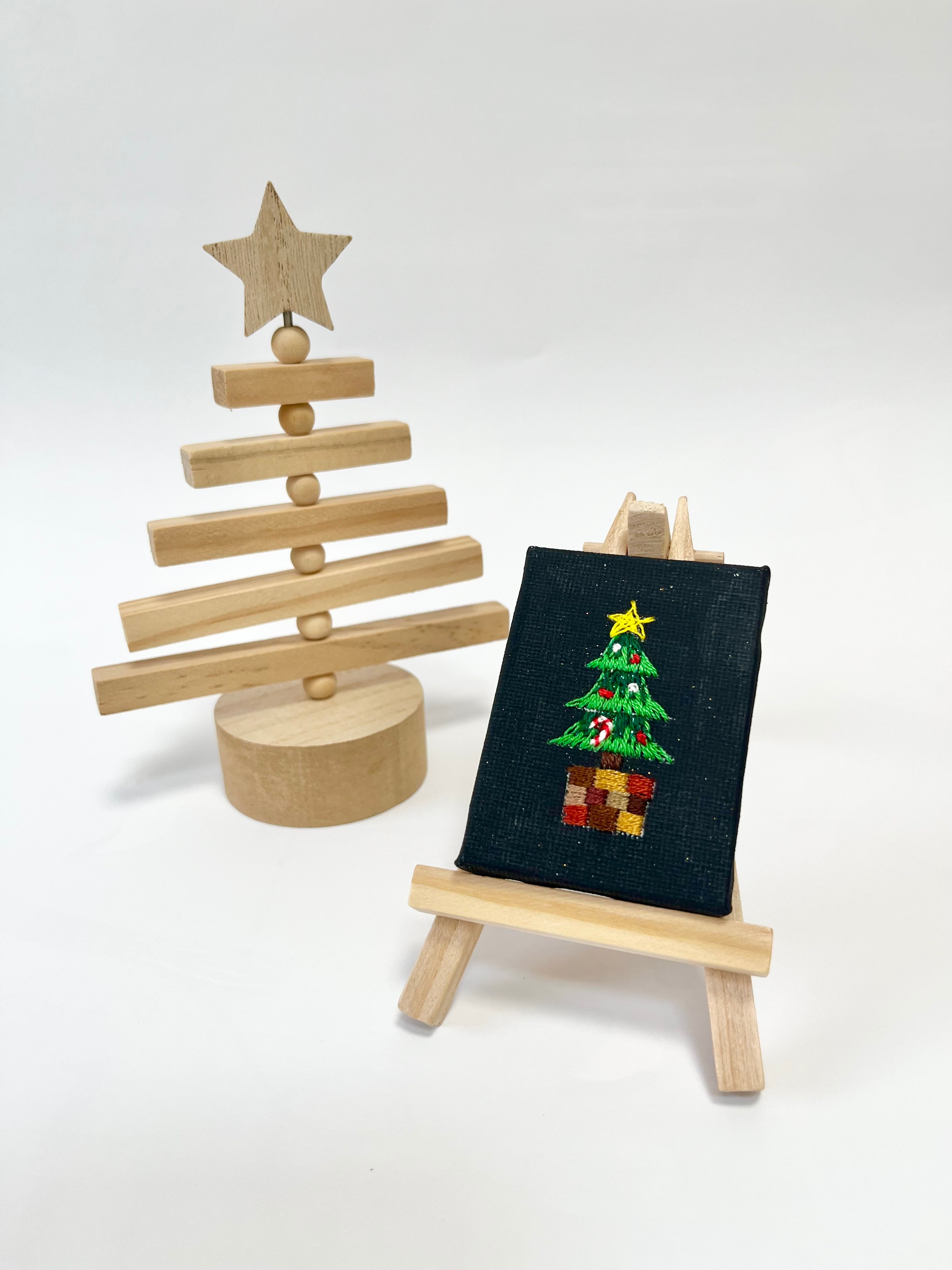ミニチュアサイズのキャンバスに刺繍したミニチュアシリーズです。こちらは飾るためのイーゼルもセットになっています。机や棚の上にもちょこっと気軽に飾れます。