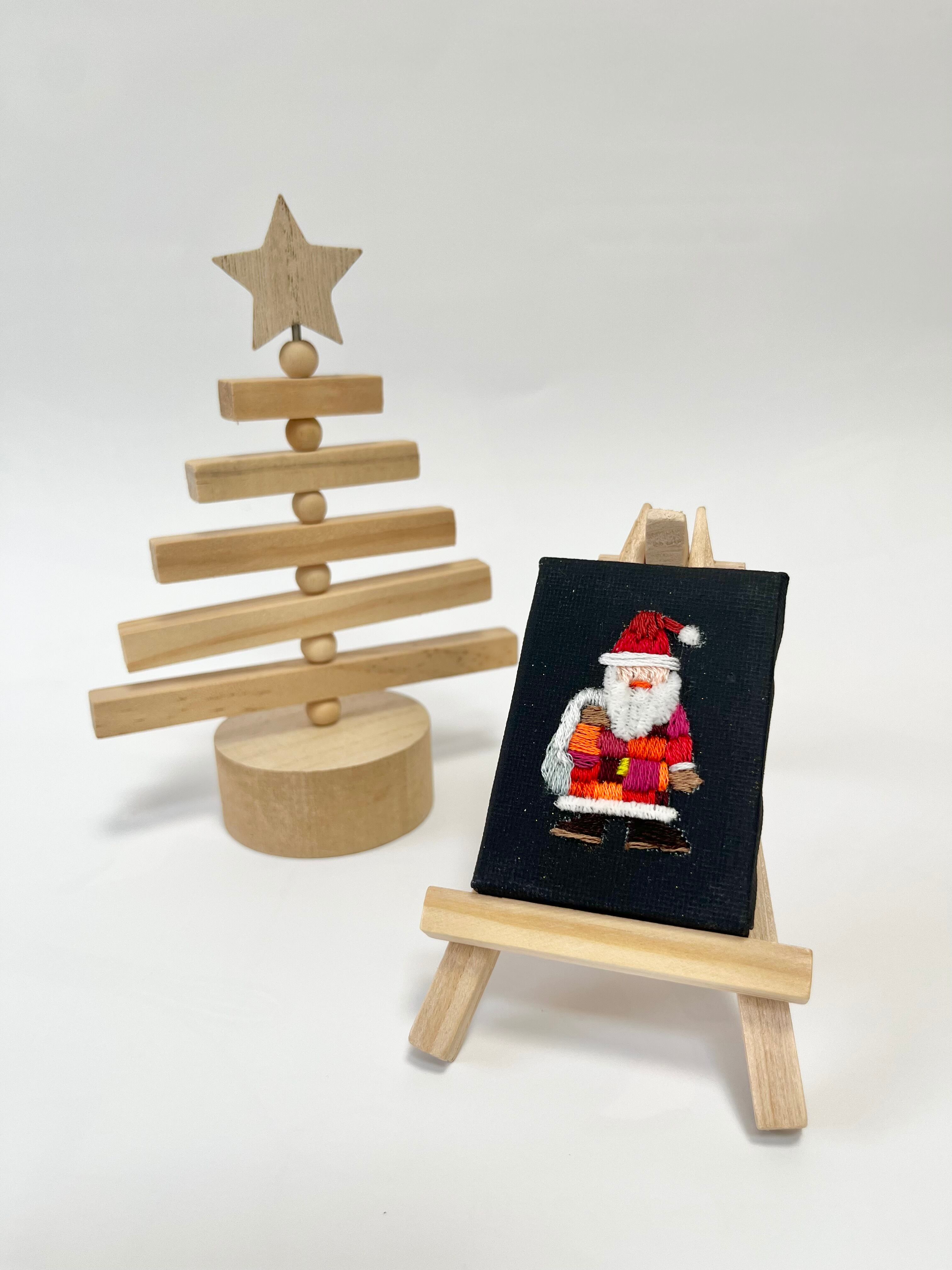 ミニチュアサイズのキャンバスに刺繍したミニチュアシリーズです。こちらは飾るためのイーゼルもセットになっています。机や棚の上にもちょこっと気軽に飾れます。